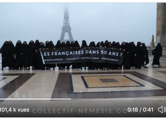 Le collectif Némésis mène une action “No Hijab Day” et l’islamisation au Trocadéro (VIDÉOS)