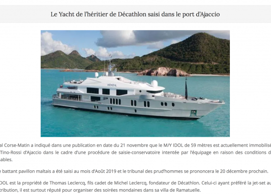 Le yacht de l’héritier donneur de leçons de Décathlon saisi dans le port d’Ajaccio