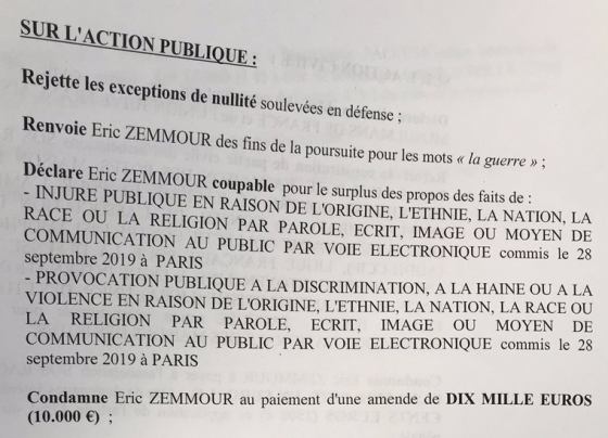 Ce DélireJudicaire montre l’aggravation de la répression pour délit d’opinion : certes #Zemmour a les moyens mais 10 000€ d'amendes…