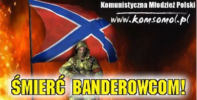 Soutien affiché aux séparatistes ukrainiens sur le site de la Jeunesse communiste de Pologne sur fond de drapeau de la Nouvelle Russie