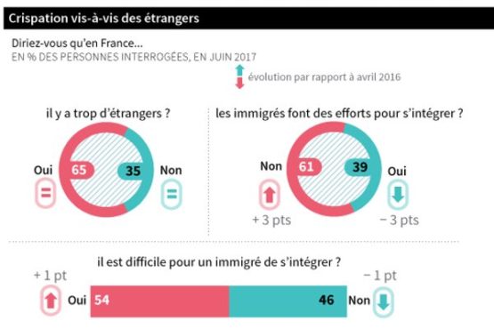 65% des Français pensent qu’il y a trop d’étrangers en France, 61% que les immigrés ne font pas d’efforts pour s’intégrer