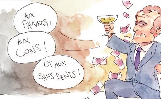 https://www.youtube.com/watch?v=OH6Kg0hdCd4 Vous n’avez pas pu oublier les sans-dents… vous souvenez probablement du mépris affiché de Macron quant aux illettrés de Gad de puis du coup du costard aux grévistes de Lune… ces oligarques sont d’un